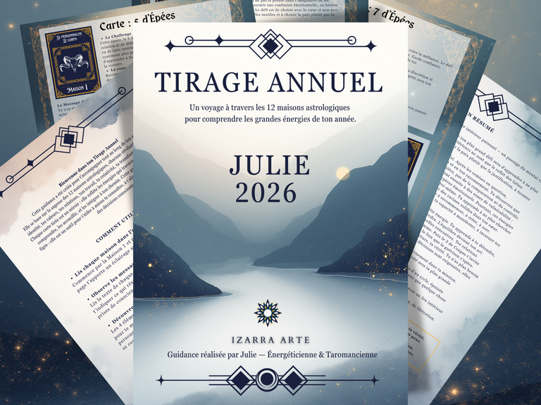Plonge dans ton tirage annuel et découvre la lecture symbolique de ton année à venir à travers les 12 maisons astrologiques.